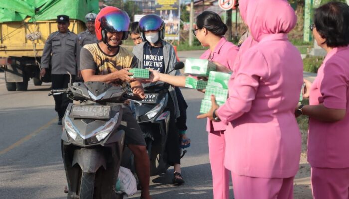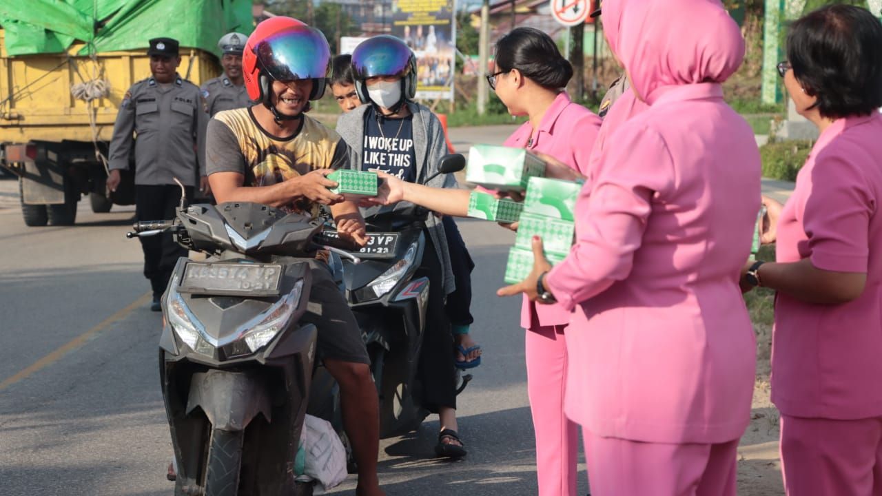 100 Paket Takjil Dibagikan Oleh Ibu Bhayangkari Sekadau kepada Pengguna Kendaraan