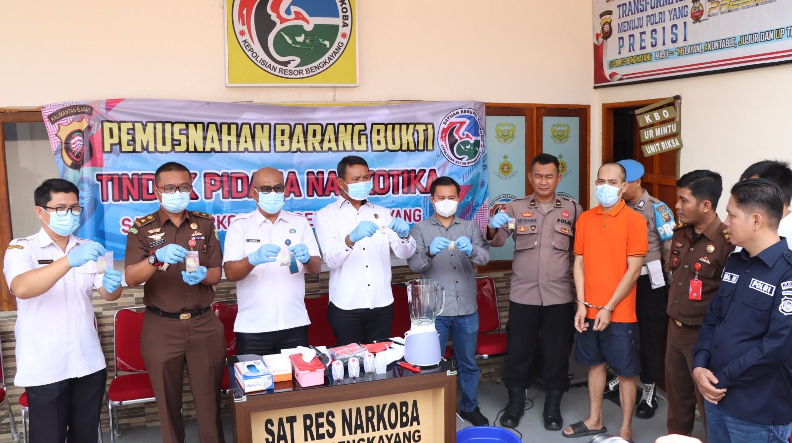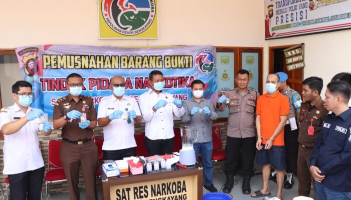 Kegiatan tersebut dipimpin oleh Kapolres Bengkayang yang diwakili Kasatresnarkoba AKP Maju K. Siregar dan dihadiri Kepala Kejaksaan Negeri Bengkayang, Kepala BNNK Bengkayang, Kadinkes Kab. Bengkayang, Pju Polres Bengkayang, Awak Media Cetak maupun Elektronik serta Penasehat Hukum Tersangka dan Tersangka.