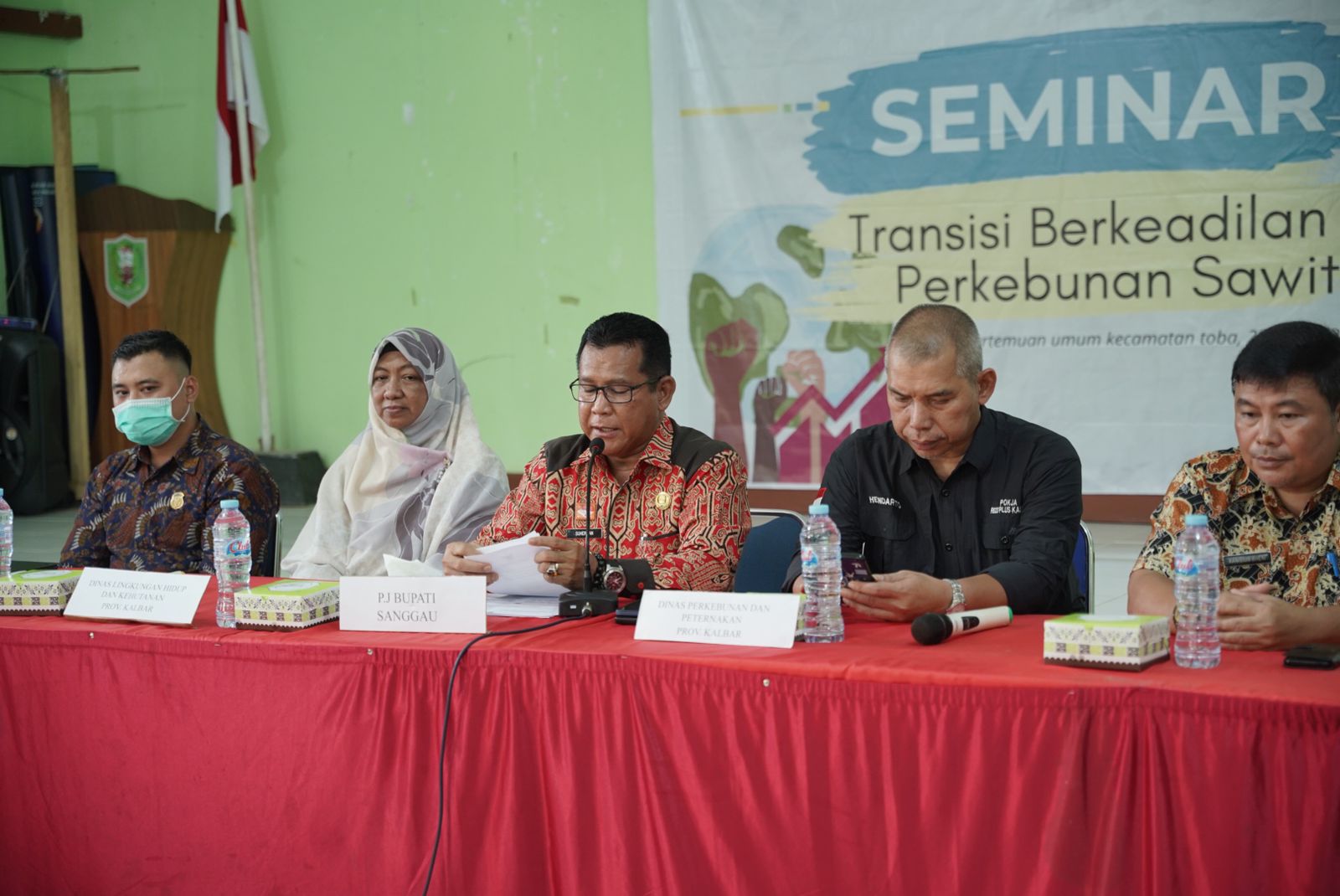 PJ Bupati Sanggau dalam sambutanya mangatakan tujuan seminar ini memberikan pengetahuan dan pemahaman yang lebih mendalam tentang konsep transisi dan relevansinya dengan kondisi buruh di perusahan sawit