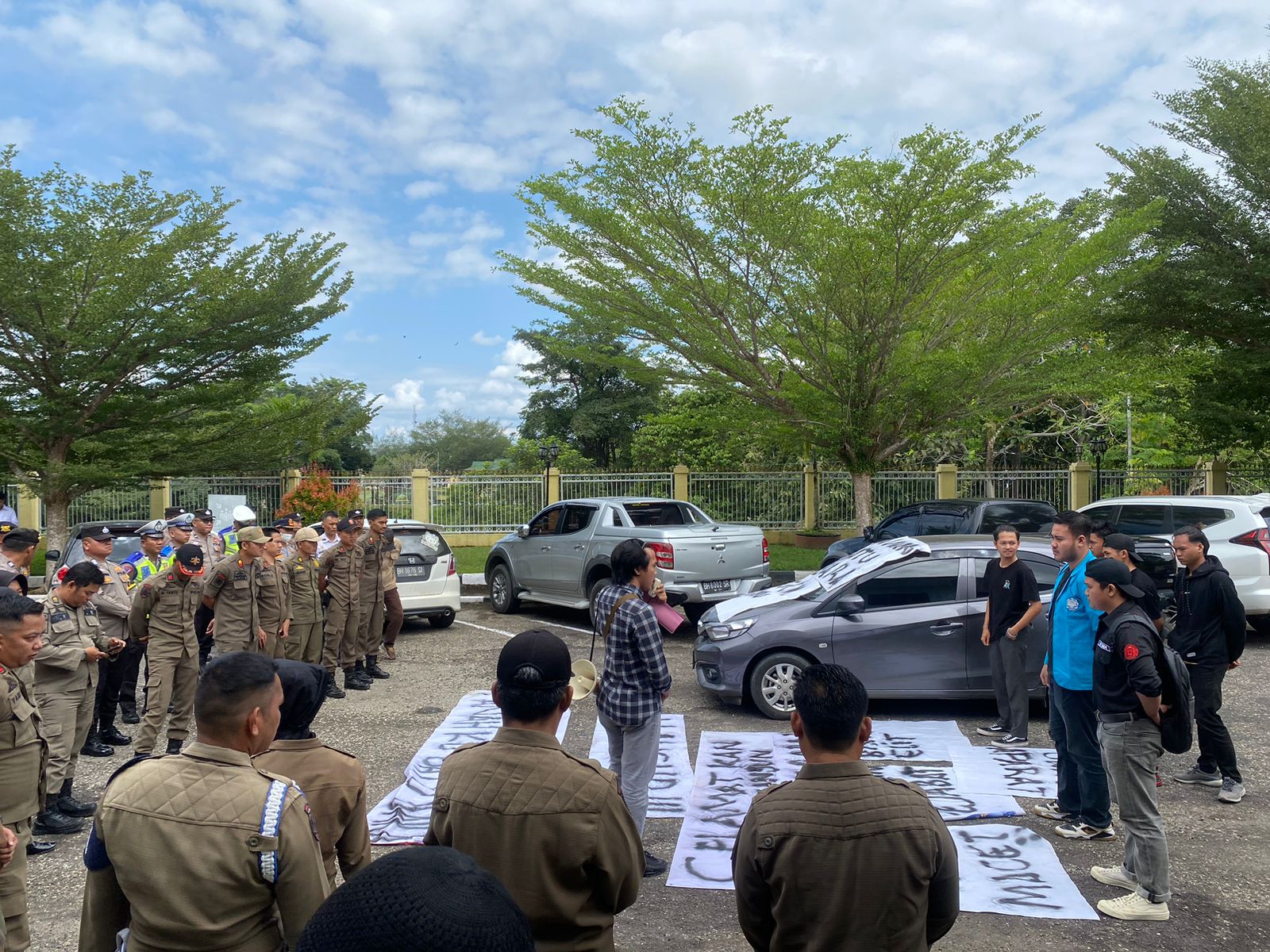 SAROLANGUN, mentari khatulistiwa.co.id-Senin [01/4] sekira pukul 10.00 wib bertempat di halaman kantor Bupati Sarolangun telah dilaksanakan aksi unjuk rasa oleh Forum Mahasiswa Bintang Sembilan Kabupaten Sarolangun. Polres Sarolangun kerahkan sebagian personilnya untuk melakkukan pengawalan dan pengamanan terhadap aksi unras tersebut.