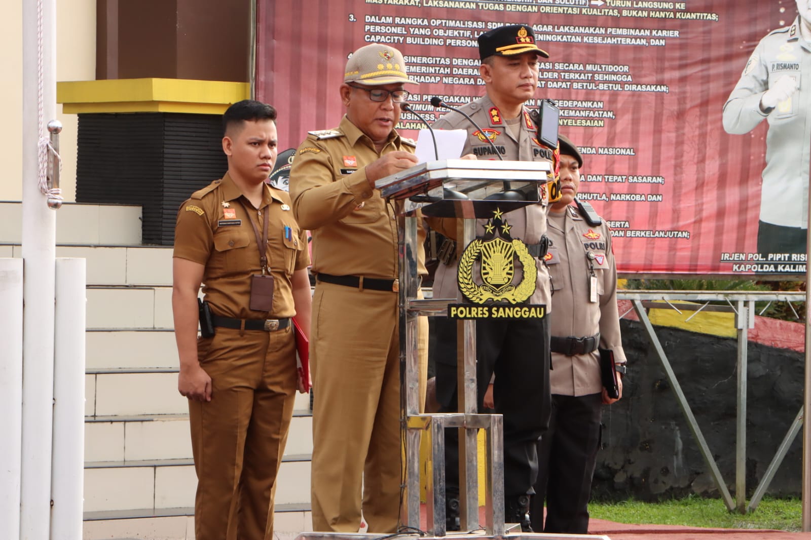 Sanggau, Mentarikhatulistiwa.co.id. PJ Bupati Sanggau Suherman, SH, didampingi Kapolres Sanggau Akbp Suparno Agus Candra Kusumah SH, S.I.K, menjadi Inspektur Upacara dalam kegiatan Apel Gelar Pasukan dalam rangka Operasi Ketupat tahun 2024 di wilayah Hukum Polres Sanggau, bertempat di halaman Kantor Polres Sanggau Jalan Jenderal Sudirman Kelurahan Beringin Kecamatan Kapuas Kabupaten Sanggau, Rabu 3 April 2024 pukul 06.30 WIB s/d selesai.