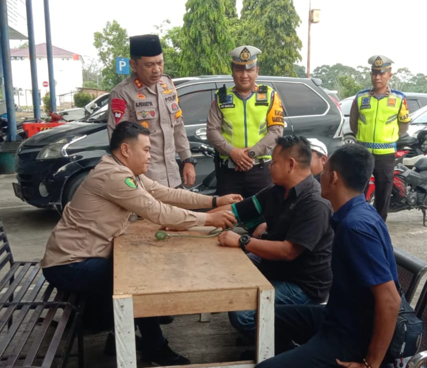 Terlihat Kapolres Sarolangun berbincang dengan para sopir sembari mereka diperiksa kesehatannya oleh tim kesehatan dari Polres Sarolangun. Saat ditemui awak media, AKBP Budi Prasetya, S.Ik, M. Si mengatakan banyak faktor yang menjadi penyebab kecelakaan lalu lintas, untuk itu Polres Sarolangun intens melakukan pengecekan kelayakan kendaraan selama musim mudik lebaran untuk mewujudkan mudik ceria penuh makna .