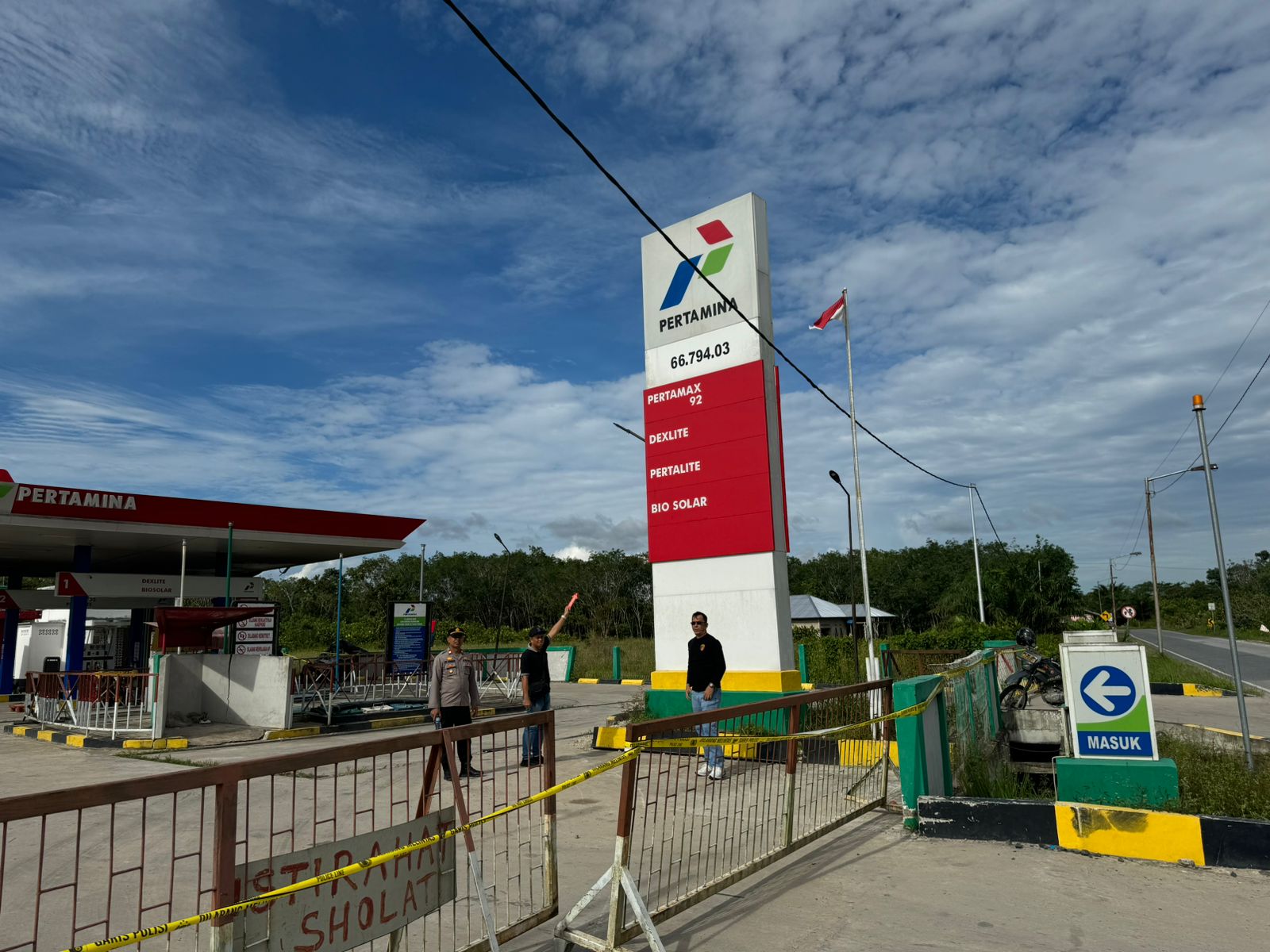 Usai kebakaran mobile tersebut, Satreskrim Polres Sambas langsung memasang police line di SPBU 66.794.03 Galing. (Red/Tim)