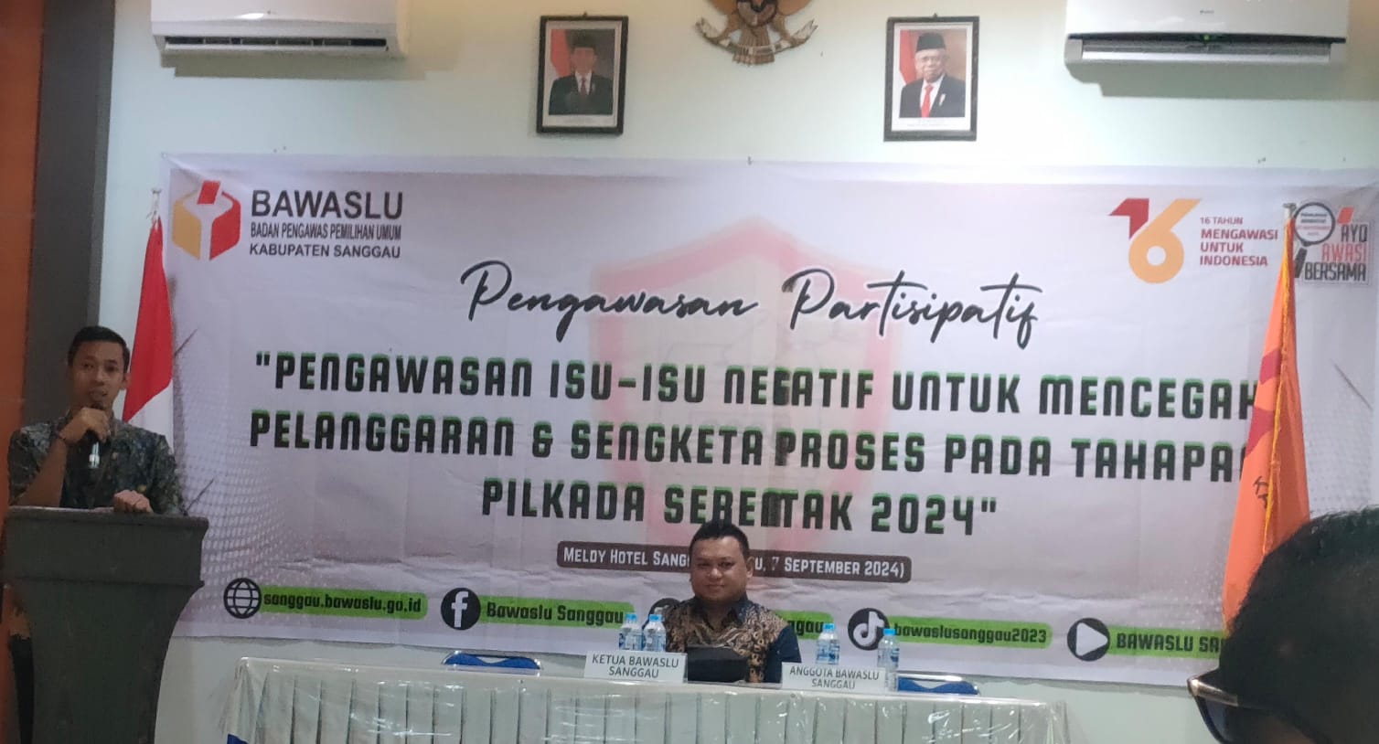 SANGGAU,Mentarikhatulistiwa.co. id-Dalam rangka meningkatkan Pengawasan Partisipatif pada Pilkada Tahun 2024 di wilayah Kabupaten Sanggau, Badan Pengawas Pemilu Kabupaten Sanggau menyelenggarakan Pengawasan Partisipatif dengan tema “Pengawasan Isu-Isu Negatif Untuk Mencegah Pelanggaran Dan Sengketa Proses Pada Tahapan Pilkada Serentak 2024”. di Aula Hotel Meldy. Sabtu (7/9/2024)
