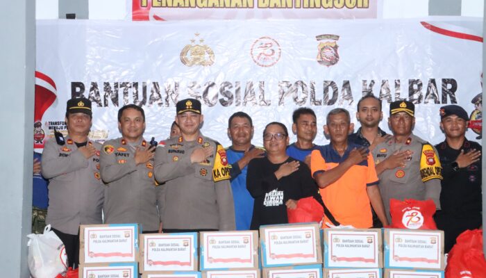 Sanggau-Mentarikhatulistiwa.co.id-Penyerahan Bantuan Sosial (BANSOS) Polda Kalbar untuk warga Kecamatan . Tayan Hulu Kabupaten Sanggau yang terdampak Bencana Banjir.