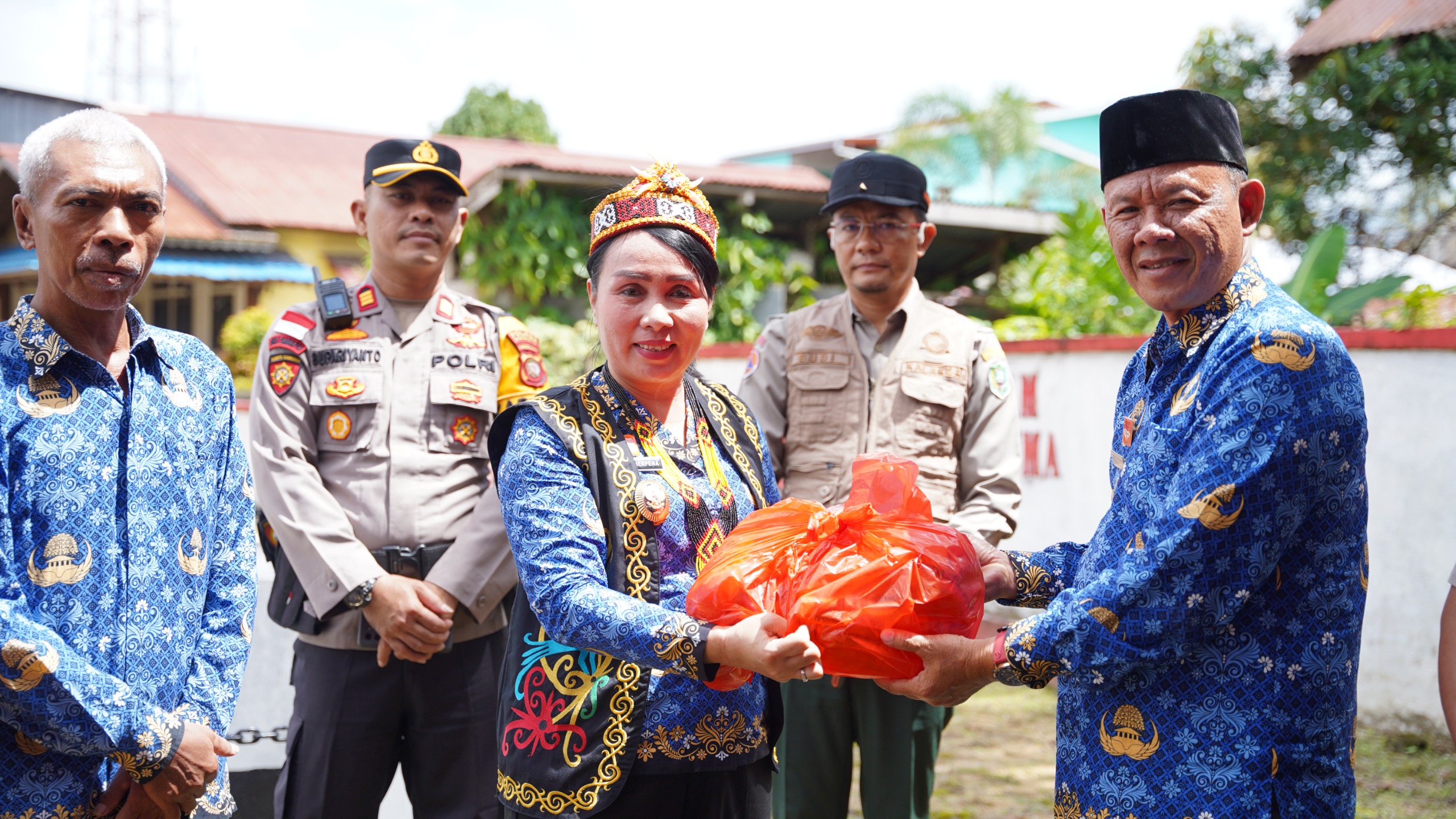 kemudian acara di lanjutkan pemberian bantuan sembako kepada korban banjir yang terjadi di desa melawi makmur yang di wakili oleh Pj kades melawi makmur (red)