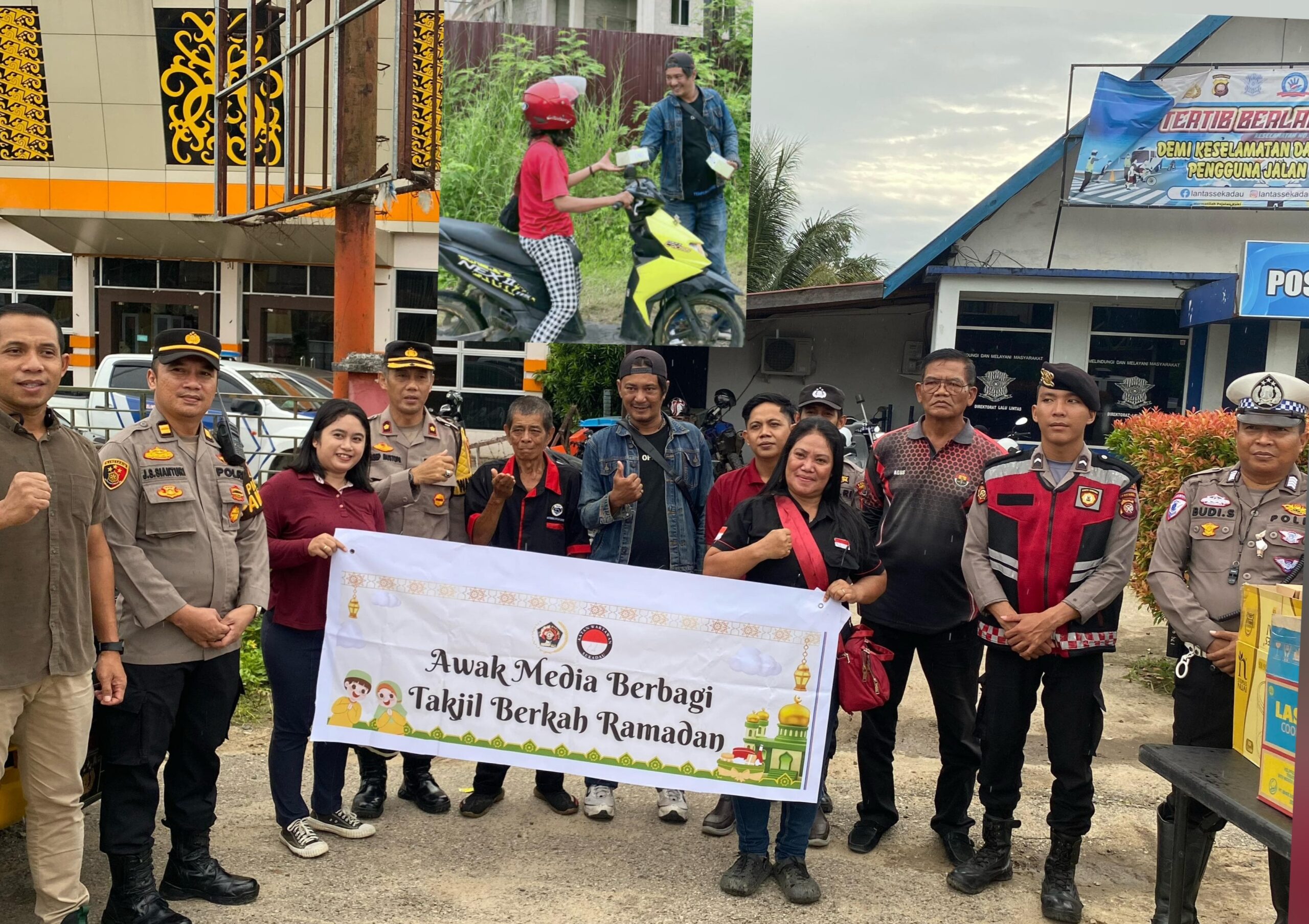 “Hari ini kita bersama awak media, PWI dan IWAS berbagi takjil dalam rangka bulan suci Ramadhan, semoga berkah, ” kata Wakapolres.