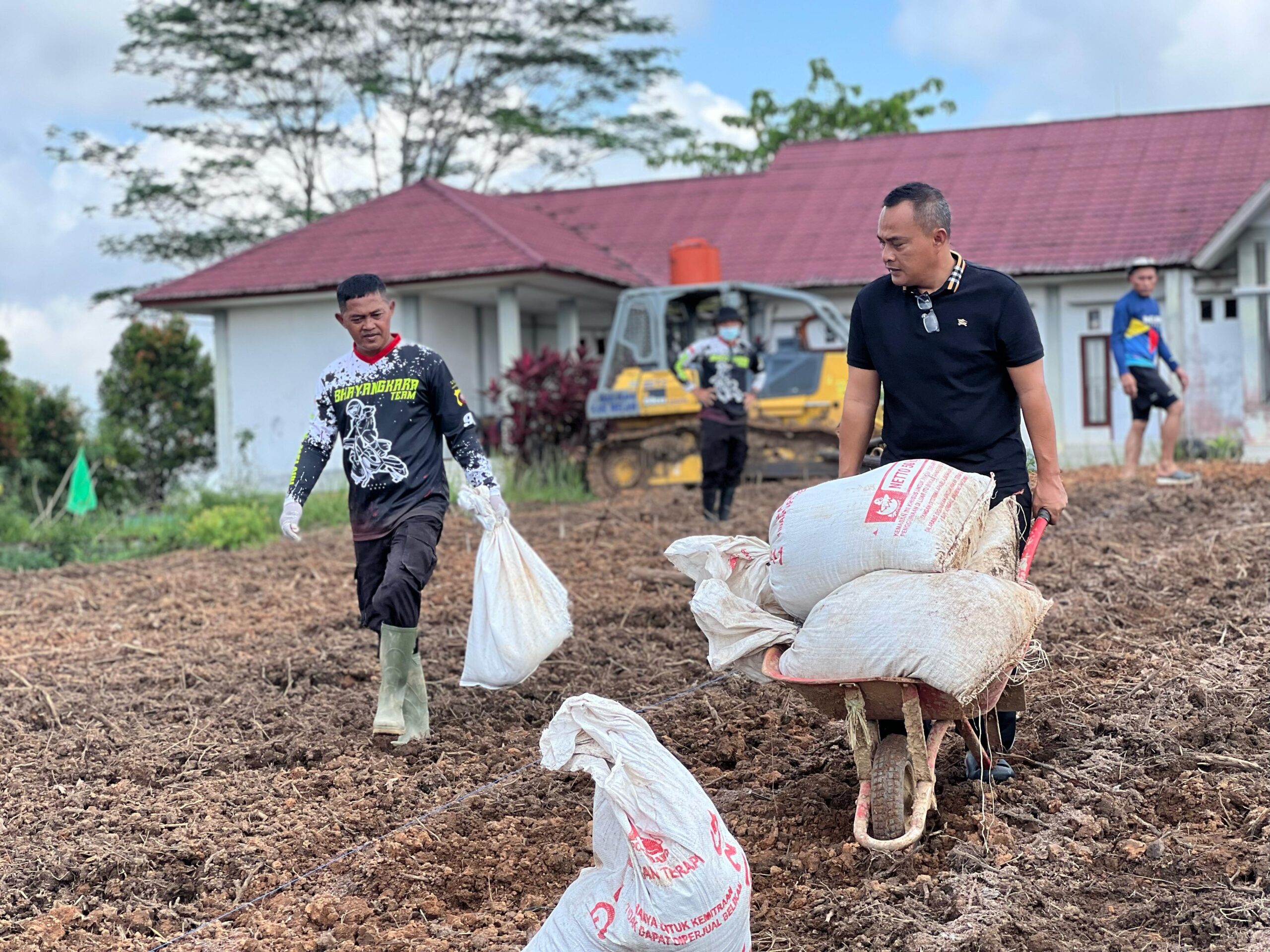 Kapolres Melawi AKBP Harris Batara Simbolon, S.I.K., S.H., M.Tr.Opsla pantau langsung kesiapan penambahan lahan penanaman jagung di belakang Dinsos Kabupaten Melawi Desa Kelakik Kecamatan Nanga Pinoh, Sabtu (3/5/25) siang.