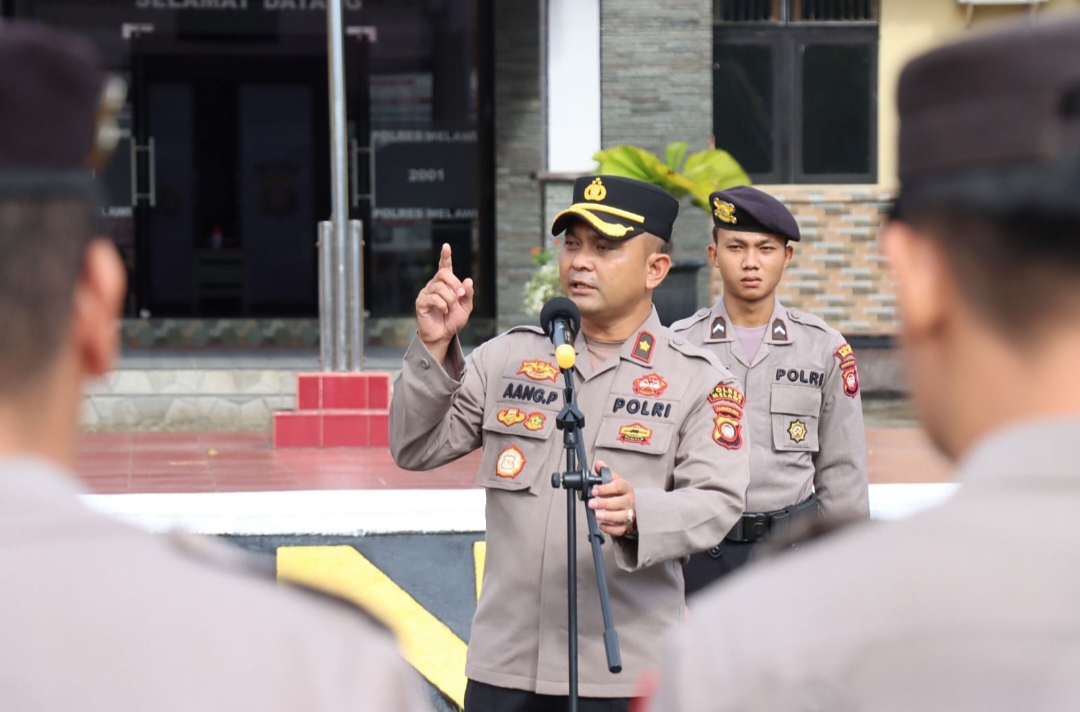 “Disiplin dalam tugas, hindari pelanggaran, dukung program pemerintah dan tidak melakukan pelanggaran yang dapat merusak institusi Polri,” ujar Kompol Aang.