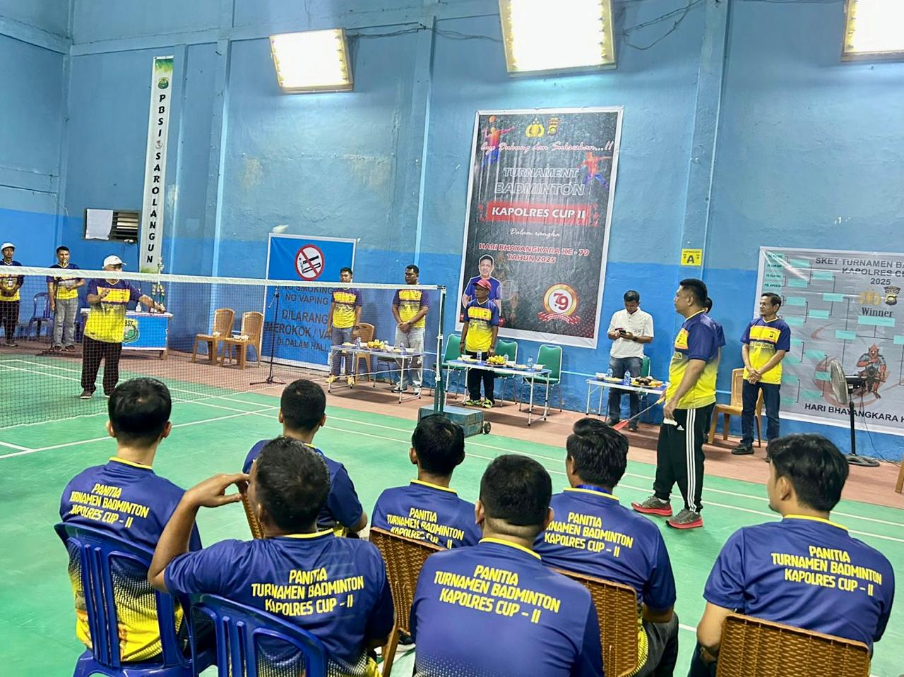 Sarolangun,mentarikhatulistiwa.co.id-Menjadi hari yang penuh semangat di Hall Pemkab Sarolangun. Dalam rangka memperingati Hari Bhayangkara ke-79, Kapolres Sarolangun AKBP Budi Prasetya, S.IK. MSI, secara resmi membuka Turnamen Bulu Tangkis Kapolres Open Cup-II yang terbuka untuk masyarakat umum maupun internal Kepolisian.