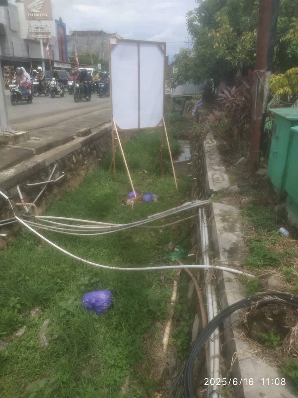 “Kok bisa-bisanya pasang baliho di dalam parit? Padahal itu bukan tempat yang layak untuk pemasangan baliho,” ujarnya.