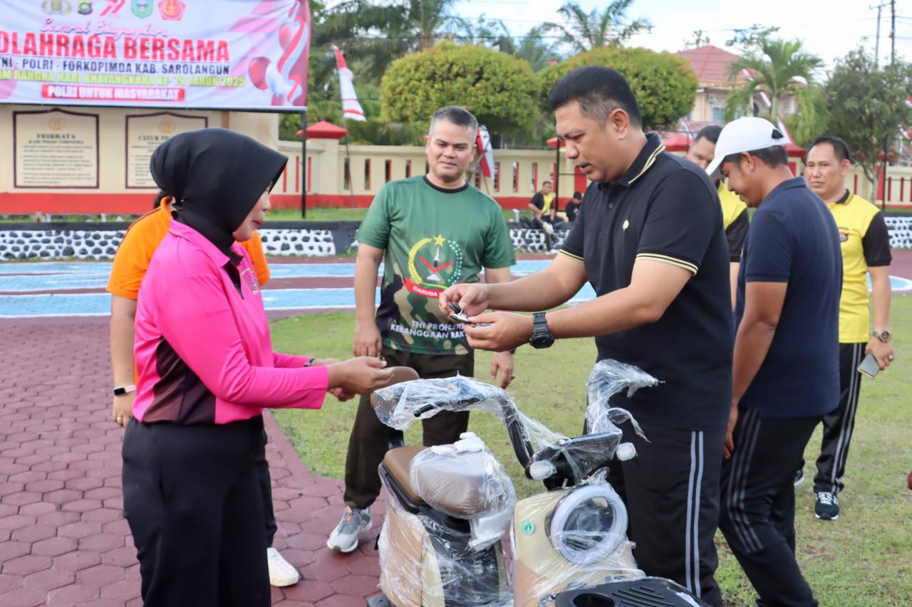 Sarolangun,mentarikhatulistiwa.co.id-Menyambut Hari Bhayangkara ke-79 yang jatuh pada 1 Juli 2025, Polres Sarolangun menggelar kegiatan olahraga bersama yang diikuti personel Polres Sarolangun, Kodim 0420/Sarko, Forkopimda Kabupaten Sarolangun beserta Bhayangkari, Ibu Persit, Ibu PKK Sarolangun bertempat di Halaman Apel Mapolres Sarolangun, Jum’at (20/6/2025) pagi.