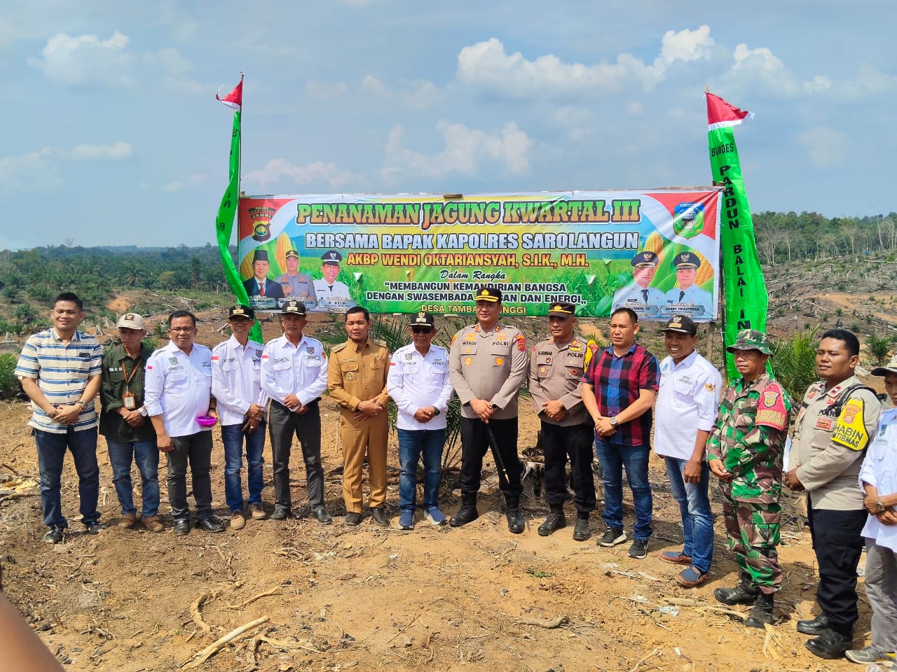 Sarolangun,mentarikhatulistiwa.co.id-Dalam rangka mendukung program Ketahanan Pangan POLRI, Polres Srolangun menggelar kegiatan Penanaman Jagung Kuartal III secara simbolis di lahan pertanian seluas 3 hektar di Dusun Karang Jering Desa Tambang tinggi Kec. Cermin Nan Gedang Kab. Sarolangun, pada Selasa (22/7/2025) siang.