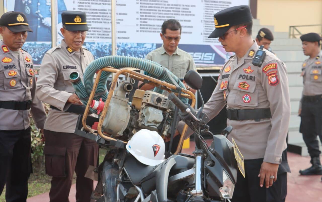 Kegiatan apel dilanjutkan dengan pengecekan langsung sarana dan prasarana pendukung, seperti kendaraan pemadam, mesin pompa air, alat pelindung diri, hingga peralatan komunikasi. Pengecekan dilakukan oleh Kabag Ops didampingi para PJU Polres Sanggau guna memastikan kesiapan logistik di lapangan.