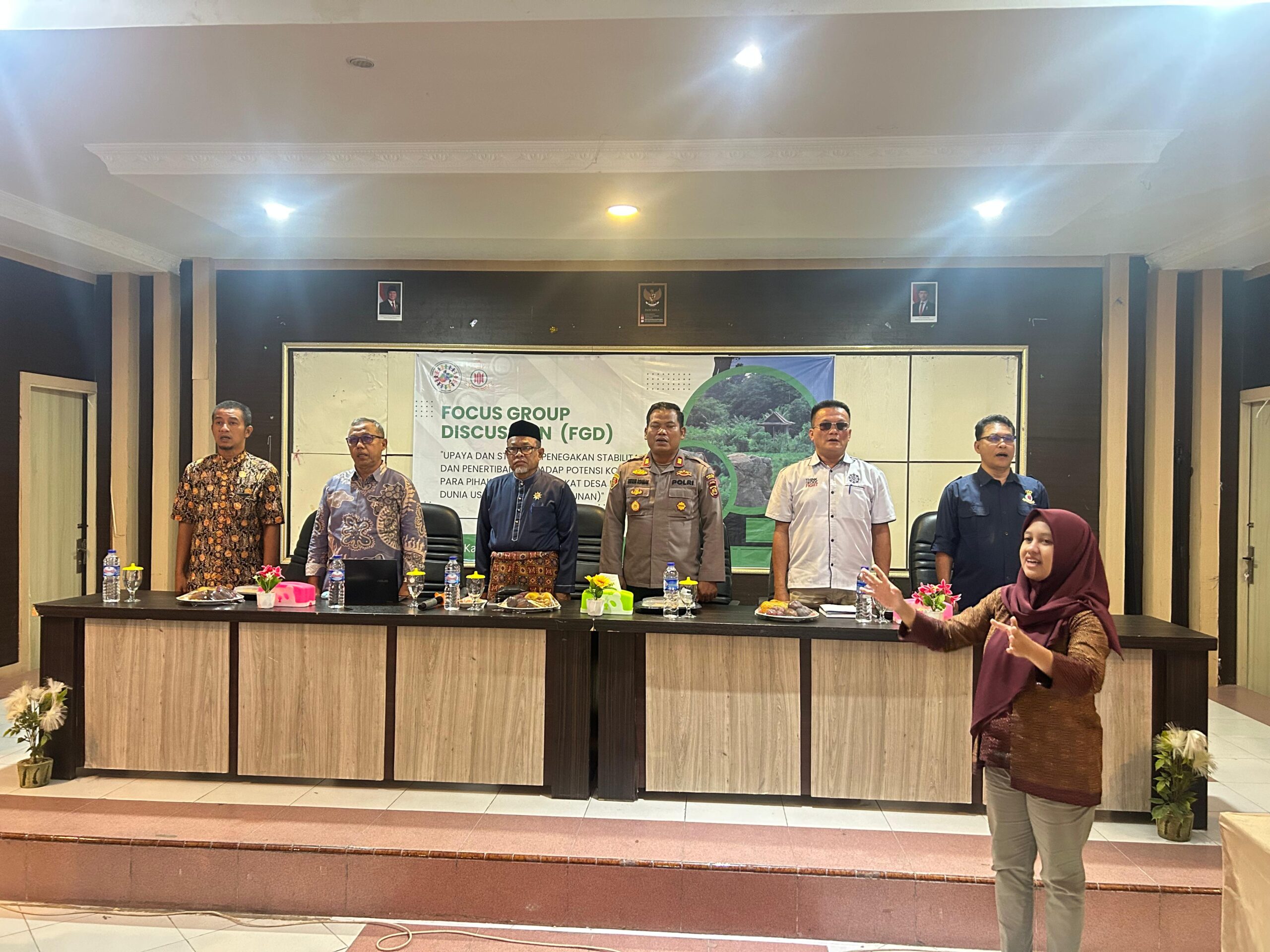 Bertepatan Kamis, 14 Agustus 2025, sekira pukul 09.00 WIB, bertempat di Hotel Merangin Syariah kegiatan Focus Group Discussion Dengan Tema “Upaya dan strategi penegakan stabilitas dan penertiban terhadap potensi konflik para pihak (SAD, Masyarakat Desa dan Dunia Usaha Sektor Perkebunan berlangsung dengan hadirnya Ketua Lembaga Adat Melayu Prov. Jambi di wakili oleh Wakil Ketua Umum LAM Jambi Provinsi Jambi Drs. H. Hatam Tapsir, M.M. serta beberapa tokoh penting di provinsi Jambi diantranya Guru Besar Ahli Hukum Universitas Jambi Prof. Dr. Husman, S.H.,M.H. Ketua Yayasan Prakasa Mandiri Budi Setiawan, serta dihadiri pula Kapolres Merangin AKBP. Kiki Firmansyah Effendy. diwakili oleh Kapolsek Tabir Selatan Akp. Fatkur Rohman, S.H, M.H., dan tokoh masyarakat juga perwakilan perusahaan berdekatan dalam area industri dan perkebunan dan Tokoh tokoh Suku Anak Dalam.