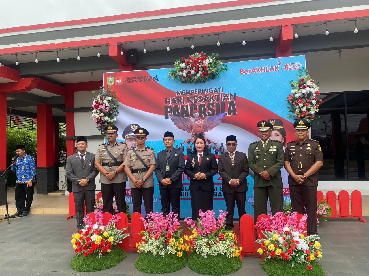 Sanggau ,mentarikhatulistiwa.co.id- kepala staf kodim (Kasdim) mayor arm Dulloh menghadiri kegiatan upacara hari lahir pancasila tahun 2025 yang berlansung khidmat di lapangan lapangan kantor bupati sanggau.