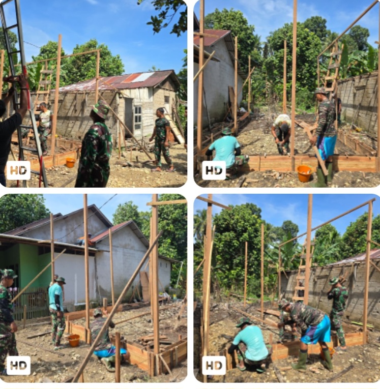 “Untuk sementara ini pengerjaan dilakukan membangun tiang rumah dan papan mal untuk mengecor pondasi bawah, semoga dengan adanya rumah yang di renovasi ini bermanfaat bagi pemilik rumah dan lebih nyaman dan kuat.” Ungkap Personel Satgas TMMD