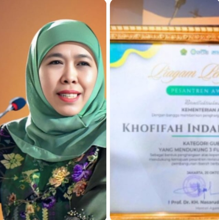 Penghargaan kategori gubernur yang mendukung 3 fungsi pesantren itu diberikan sebagai apresiasi atas komitmen Gubernur Khofifah dalam mendukung kemajuan pesantren melalui kebijakan program dan sinergi pembangunan daerah berbasis nilai pesantren.