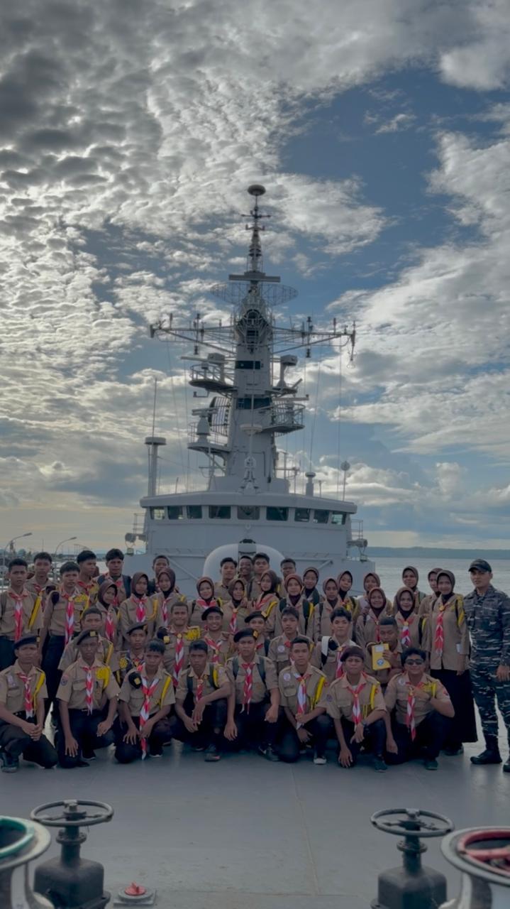 Baubau,mentarikhatulistiwa.co.id- 27 Oktober 2025 —KRI Yos Sudarso 353 Sandar di Pelabuhan Murhum Baubau Kota Baubau Prov. Sulawesi Tenggara. KRI yang panjangnya 115 meter dengan Persenjataan yang modern, memiliki Kemampuan tempur untuk peperangan anti-udara, anti-permukaan, dan anti-kapal selam menjadi daya tarik para Pelajar Pramuka di Kota Buabau untuk mengunjungi dan melihat lebih dekat (Senin 27/10/25)