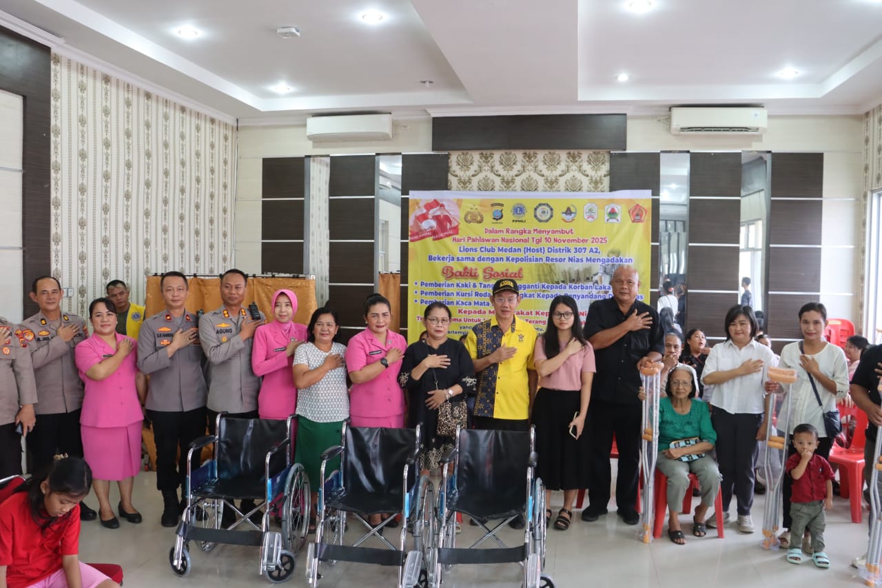 Acara dihadiri oleh Wali Kota Gunungsitoli Sowa’a Laoli, Bupati Nias Utara Amizaro Waruwu, serta Kapolres Nias AKBP Agung dan perwakilan Lions Club Indonesia Distrik 307 A2 dan pejabat utama Polres Nias.
