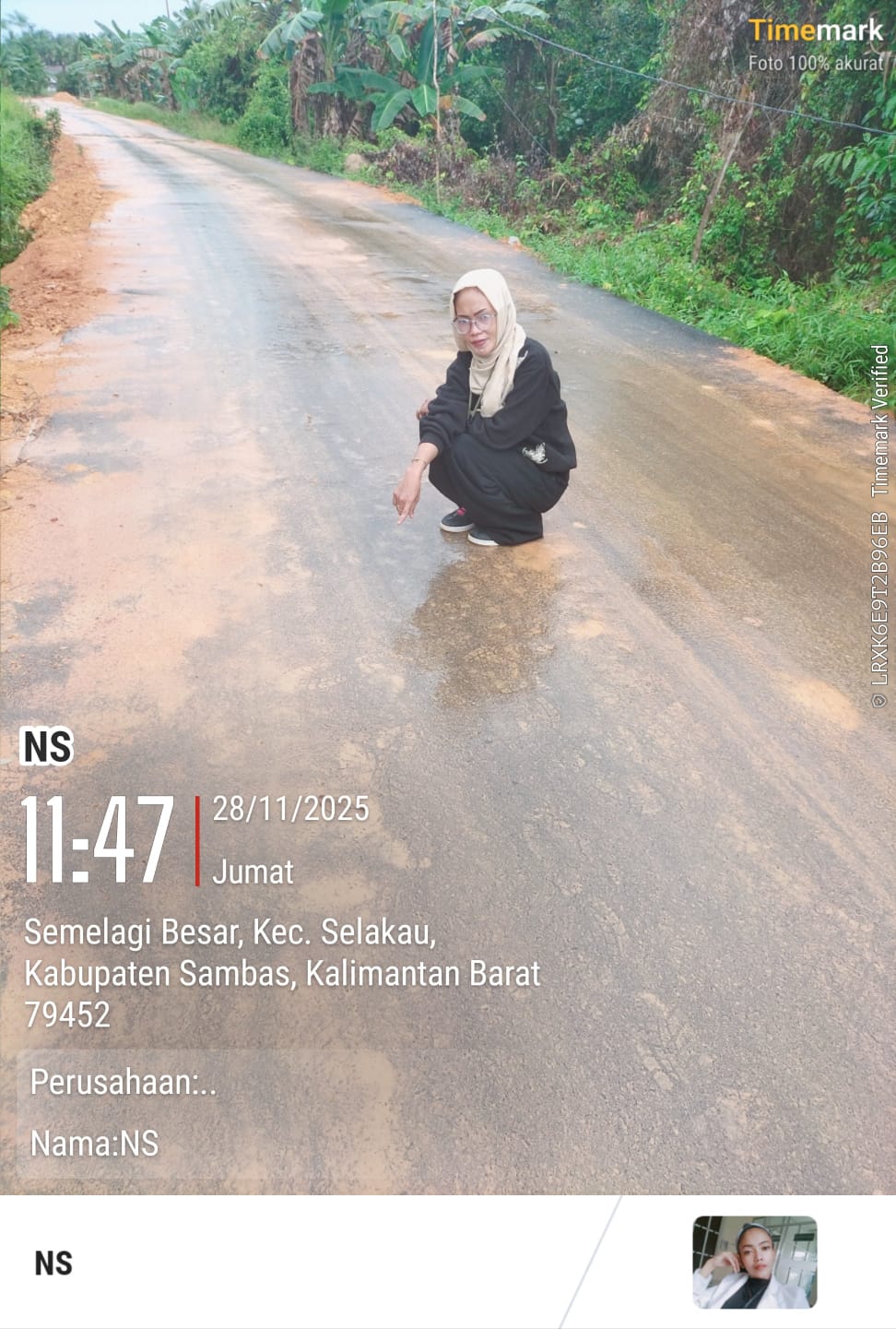 Investigasi media pada Jumat, 28 November 2025, pukul 11.47 siang di lokasi pengaspalan jalan Desa Gayung Bersambut, Semalagi Besar, Kecamatan Selakau, Kabupaten Sambas, menemukan fakta yang memprihatinkan. Menurut keterangan warga setempat yang akrab disapa Mak Long, pengaspalan jalan tersebut telah selesai sekitar satu minggu lalu.