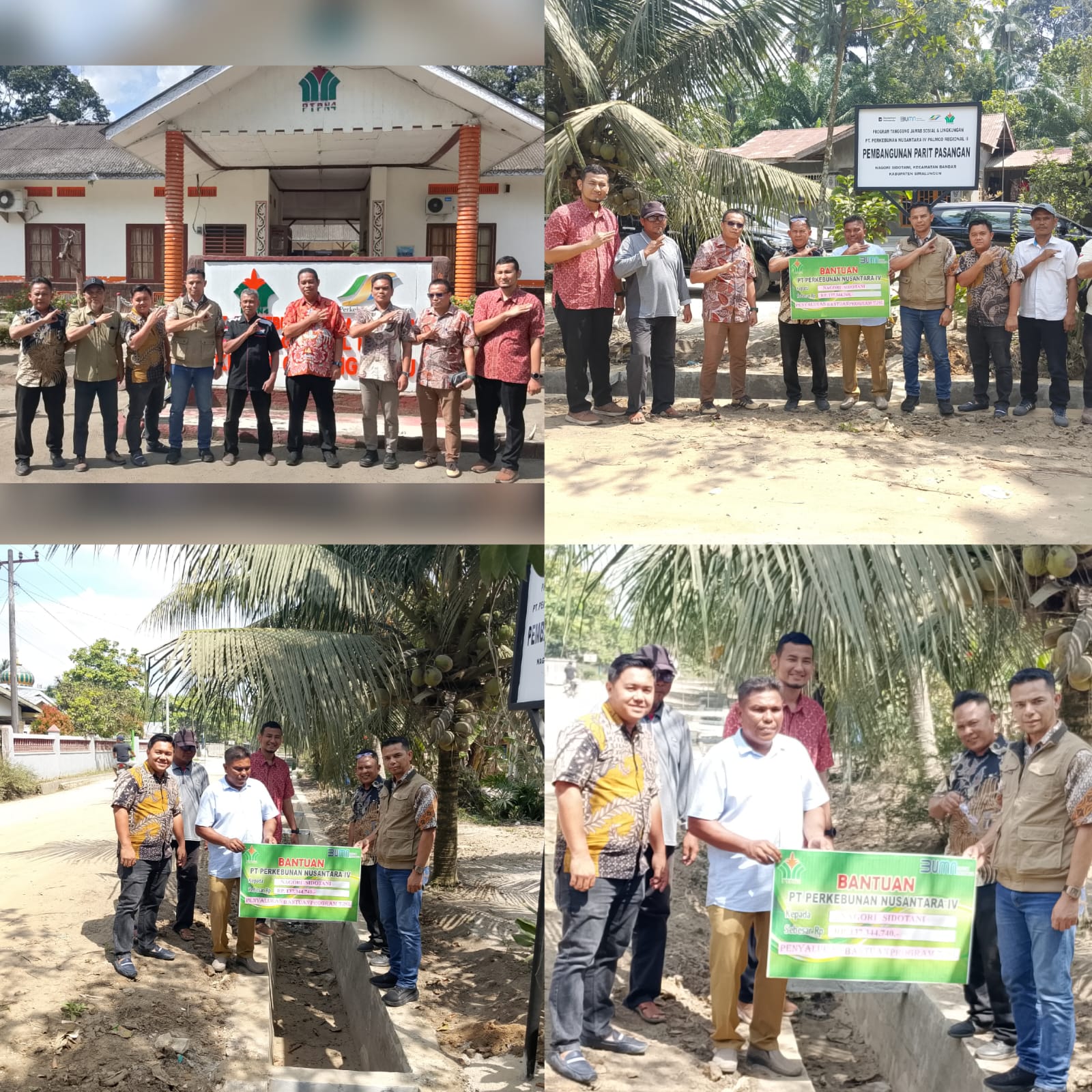 Pada hari Kamis, tanggal 15 Januari 2026 PTPN IV Regional II GUNUNG BAYU melalui program Tanggung Jawab Sosial dan Lingkungan (TJSL) menyerahkan Bantuan Sarana pembangunan parit kepada Desa SIDOTANI sepanjang150 meter di kcamatan Bandar kabupaten Simalungun