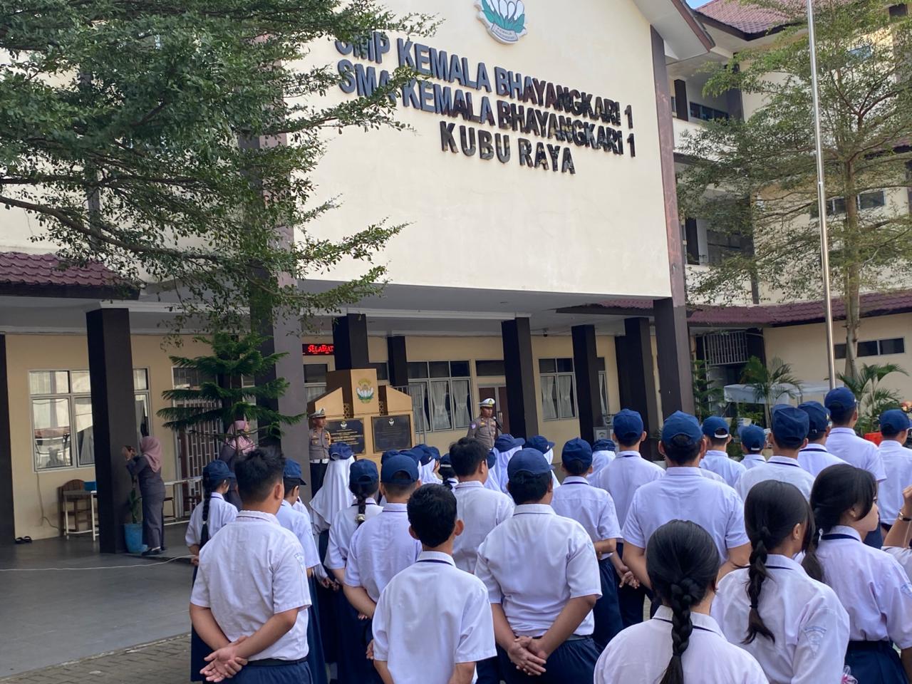 Hadir dalam kegiatan ini Kanit Kamsel IPTU Fachri, S.H., IPDA Husni, S.Sos., Bripka Dizy Diannovita, S.H., Bripda Yulianingsih, serta AIPTU Wangsit selaku Bhabinkamtibmas Polsek Sungai Raya, bersama kepala sekolah, dewan guru, dan siswa-siswi SMP Kemala Bhayangkari 1 Sungai Raya.