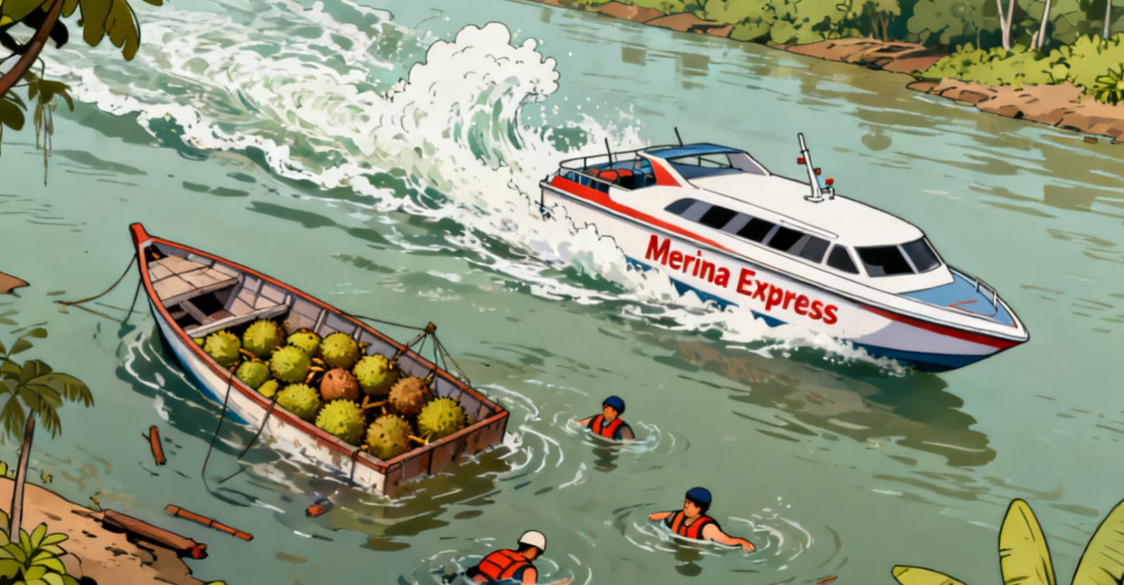 Kubu Raya –Mentarikhatulistiwa.co.id-Kapal KM. Juwita milik Dedy yang mengangkut 40.380 ton buah kelapa sawit tenggelam di Sungai Kapuas Kecamatan Rasau Jaya pada tanggal 5 Januari 2026 pukul 06:45 pagi WIB. Kejadian ini disebabkan oleh gelombang besar yang dihasilkan oleh speedboat Marina Express yang diklaim mengangkut pekerja dan investor asing dari Beijing, China untuk keperluan PT. KAN dan PT. Harita Group.