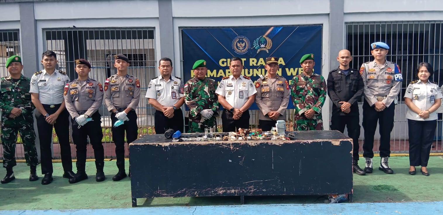 Dari hasil penggeledahan tersebut, petugas menemukan sejumlah barang terlarang dan tidak semestinya berada di dalam kamar hunian. Di antaranya enam unit telepon genggam, sepuluh charger, lima botol parfum atau minyak wangi, serta sejumlah barang lain seperti headset, speaker aktif, sendok, dan korek api.