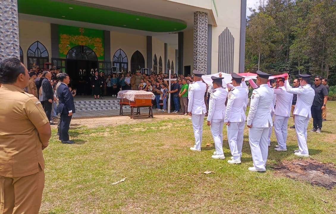 Upacara tersebut berlangsung khidmat dan penuh penghormatan sebelum jenazah diberangkatkan menuju tempat peristirahatan terakhir di Kompleks Pemakaman Yayasan Bhakti Suci, Desa Kedukul, Kecamatan Mukok.