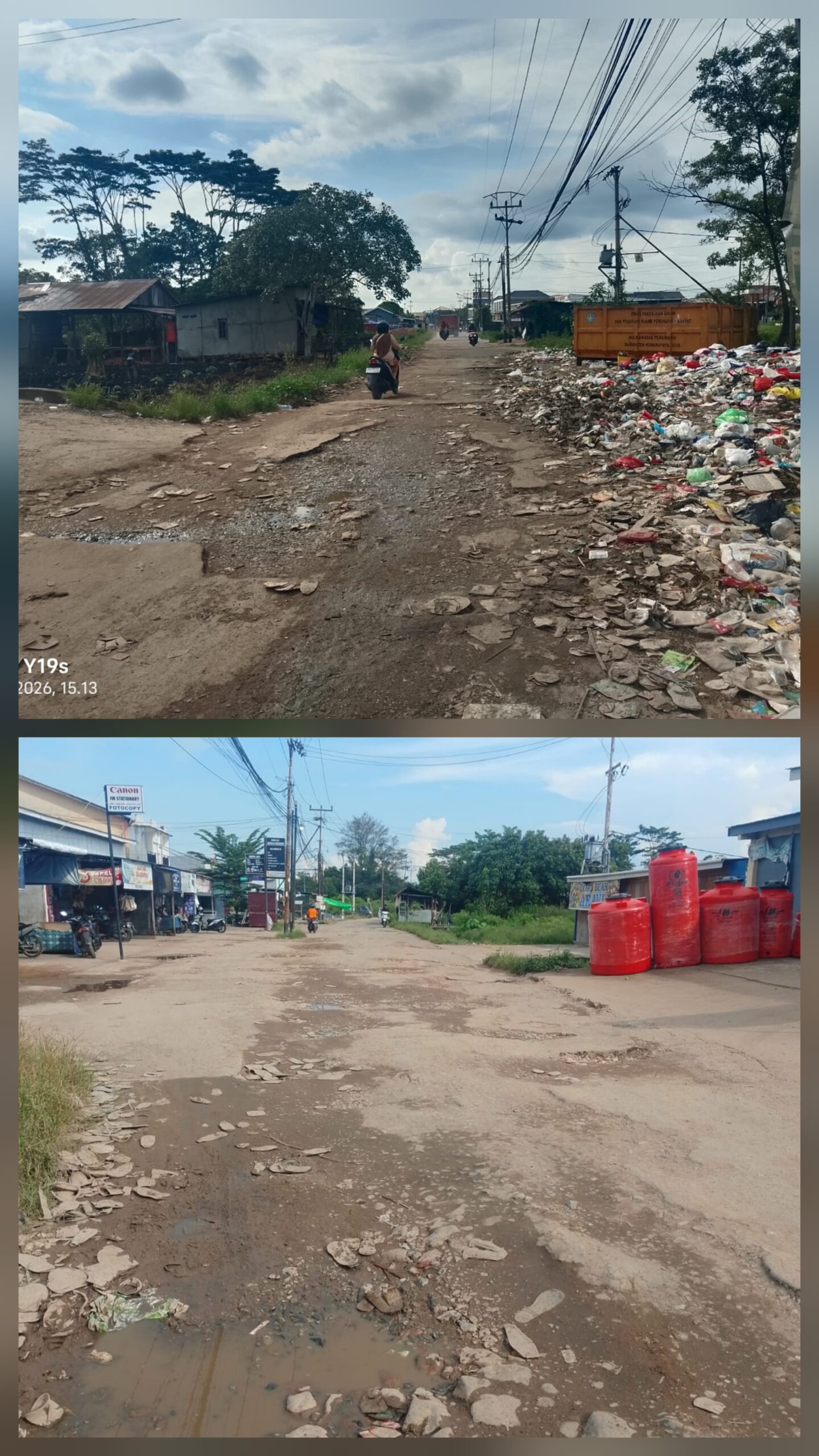 “Setiap hari kami harus lewat sini, apalagi anak-anak berangkat sekolah dan warga pergi bekerja. Jalan rusak parah, sampah numpuk di mana-mana. Kami khawatir anak-anak sakit atau kami sendiri terlibat kecelakaan,” keluh seorang warga yang ditemui saat melintas di lokasi.